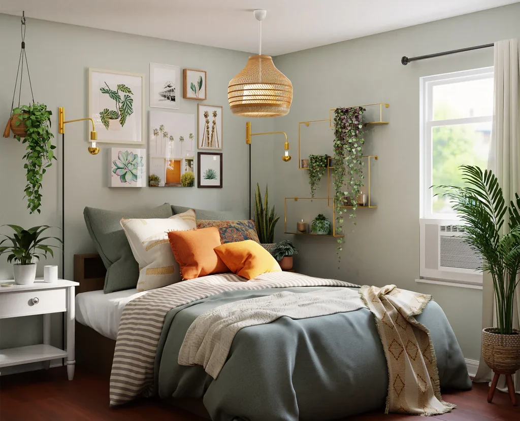 Tip: pinta una pared de acento en tono arena o verde salvia para crear un punto focal equilibrado.